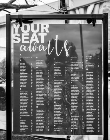 Carry your wedding aesthetic through every detail of the day. We design welcome signs, seating charts, menus, place cards, thank-you cards, and more — all perfectly matched to your invitations.